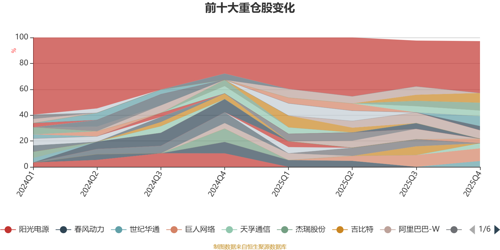 截至2025年末,基金十大重仓股分别是巨人网络、中际旭创、金风科技、新易盛、大金重工、世纪华通、生益科技、天孚通信、华友钴业、招商轮船。