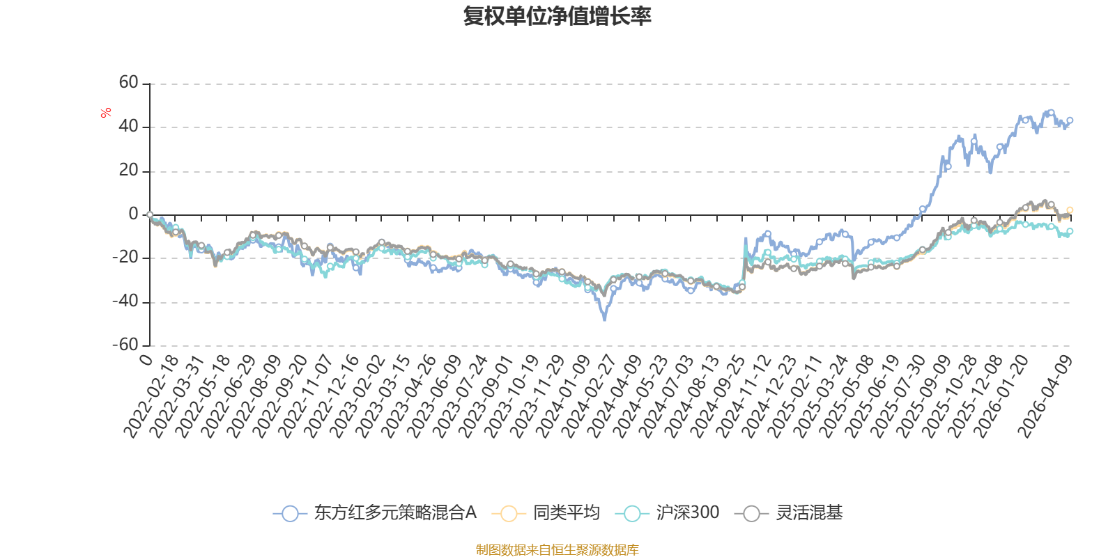 截至4月9日,东方红多元策略混合A近三个月复权单位净值增长率为-0.11%,位于同类可比基金584/1287;近半年复权单位净值增长率为6.14%,位于同类可比基金373/1286;近一年复权单位净值增长率为79.41%,位于同类可比基金143/1286;近三年复权单位净值增长率为82.19%,位于同类可比基金47/1286。