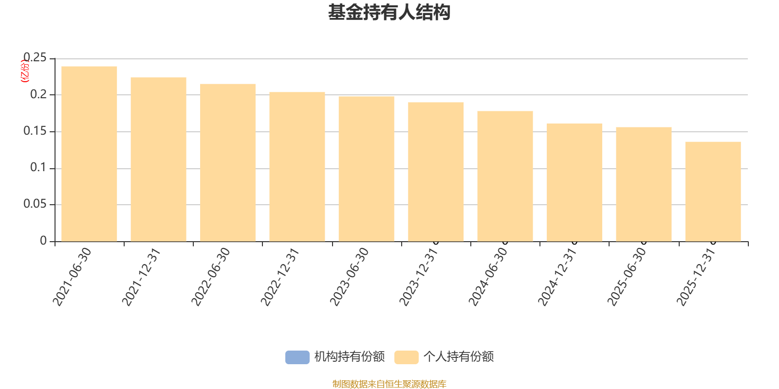截至2025年12月31日,基金持有人共计98户,合计持有1361.01万份。其中管理人员工持有3.76万份,占比0.28%,机构持有份额占比0.00%,个人投资者占比100.00%。