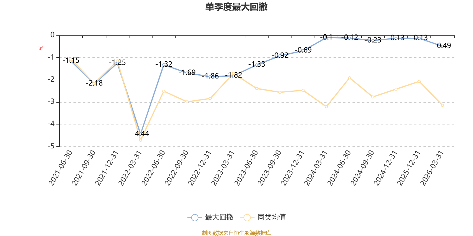 截至4月9日,基金近三年最大回撤为1.63%,同类可比基金排名9/562。单季度最大回撤出现在2022年一季度,为4.44%。