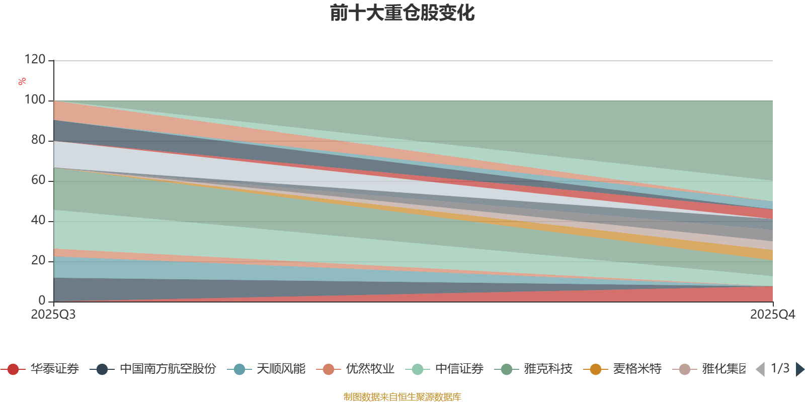 该基金持股集中度较高。截至2025年末,基金十大重仓股分别是天山铝业、雅克科技、华泰证券、蒙牛乳业、国泰海通、麦格米特、中信证券、新宙邦、雅化集团、极米科技。