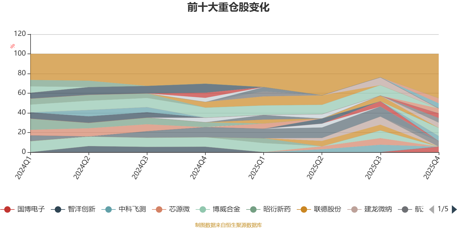 该基金持股集中度较高。截至2025年末,基金十大重仓股分别是上海瀚讯、国博电子、航天电子、航天动力、铂力特、超捷股份、中国卫星、信维通信、高华科技、臻镭科技。