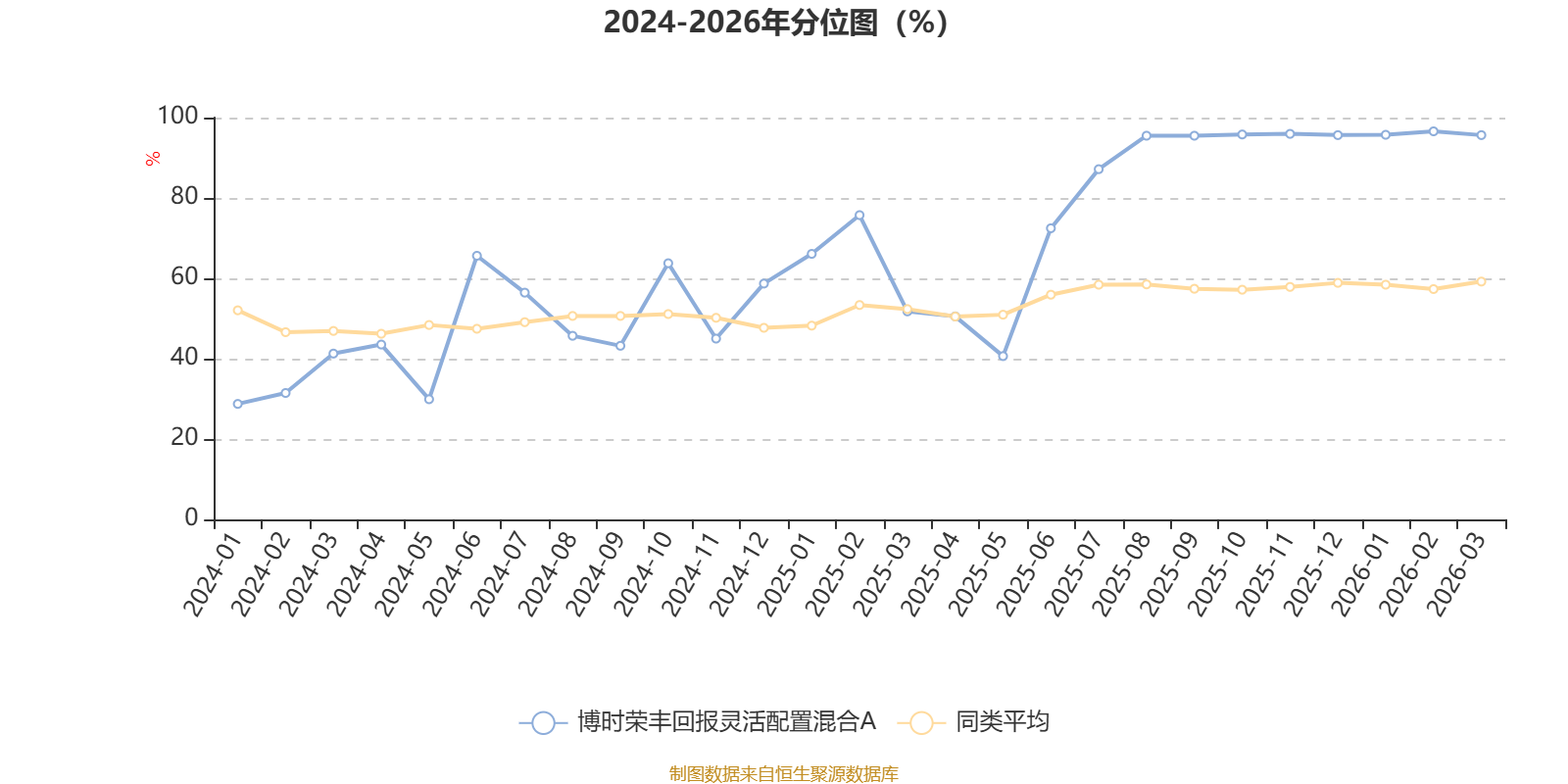 通过所选区间该基金净值增长率分位图,可以观察该基金与同类基金业绩比较情况。图为坐标原点到区间内某时点的净值增长率在同类基金中的分位数。