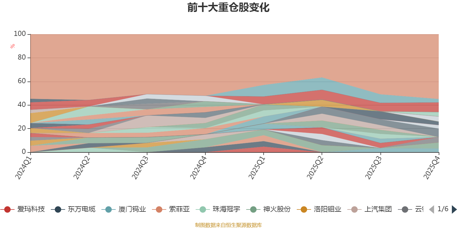 截至2025年末,基金十大重仓股分别是紫金矿业、华泰证券、神火股份、云铝股份、南京银行、中国移动、厦门钨业、江苏银行、中航沈飞、招商积余。