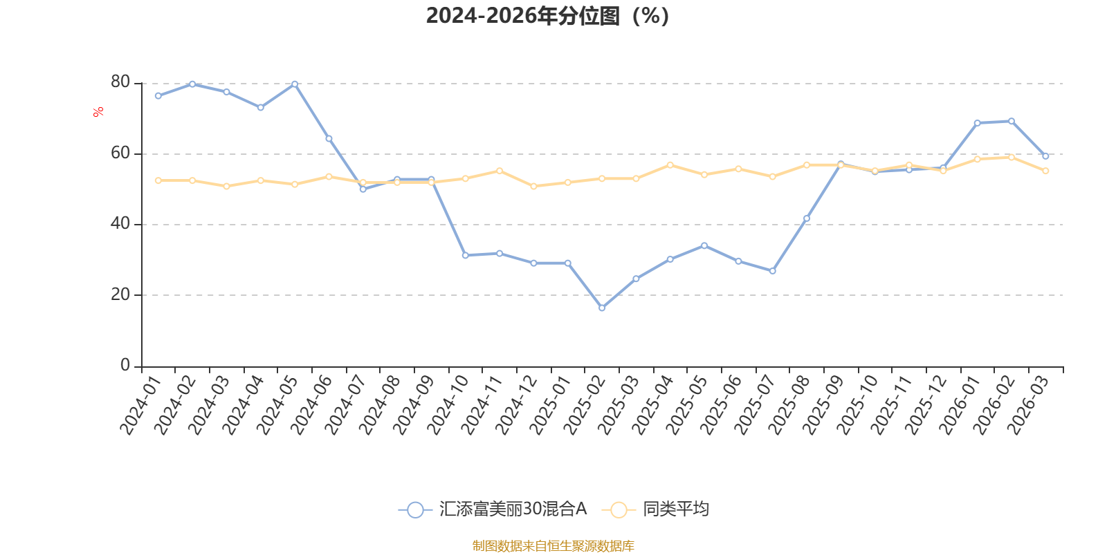 通过所选区间该基金净值增长率分位图,可以观察该基金与同类基金业绩比较情况。图为坐标原点到区间内某时点的净值增长率在同类基金中的分位数。