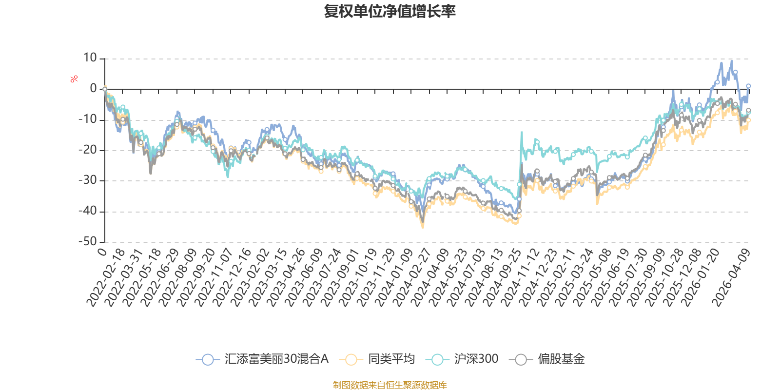 截至4月9日,汇添富美丽30混合A近三个月复权单位净值增长率为0.03%,位于同类可比基金64/185;近半年复权单位净值增长率为1.31%,位于同类可比基金77/185;近一年复权单位净值增长率为55.32%,位于同类可比基金50/185;近三年复权单位净值增长率为15.48%,位于同类可比基金88/177。