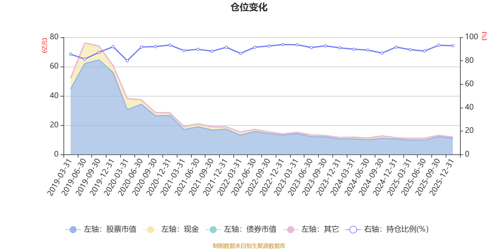 据定期报告数据统计,近三年平均股票仓位为90.84%,同类平均为87.64%。2022年末基金达到93.9%的最高仓位,2020年一季度末最低,为80.1%。