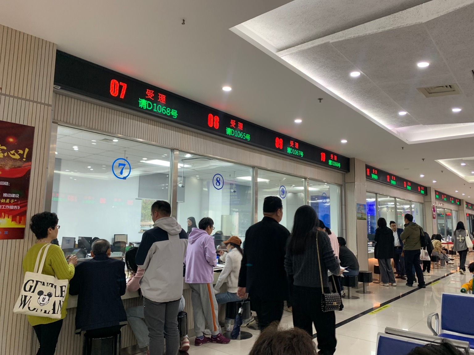 4月12日,每经记者走访上海市杨浦区房产交易管理事务中心时看到,不动产交易登记大厅各个窗口都在受理相关事务,还有不少人正在排队等候,临近下午3点,各类业务受理窗口合计办理已超120组。