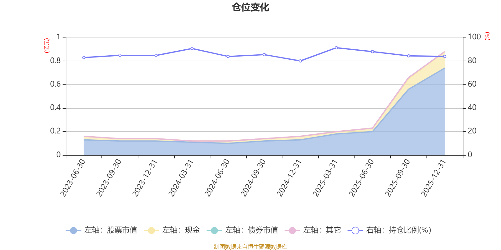 据定期报告数据统计,成立以来平均股票仓位为85.48%,同类平均为86.9%。2025年一季度末基金达到91.31%的最高仓位,2024年末最低,为80.08%。