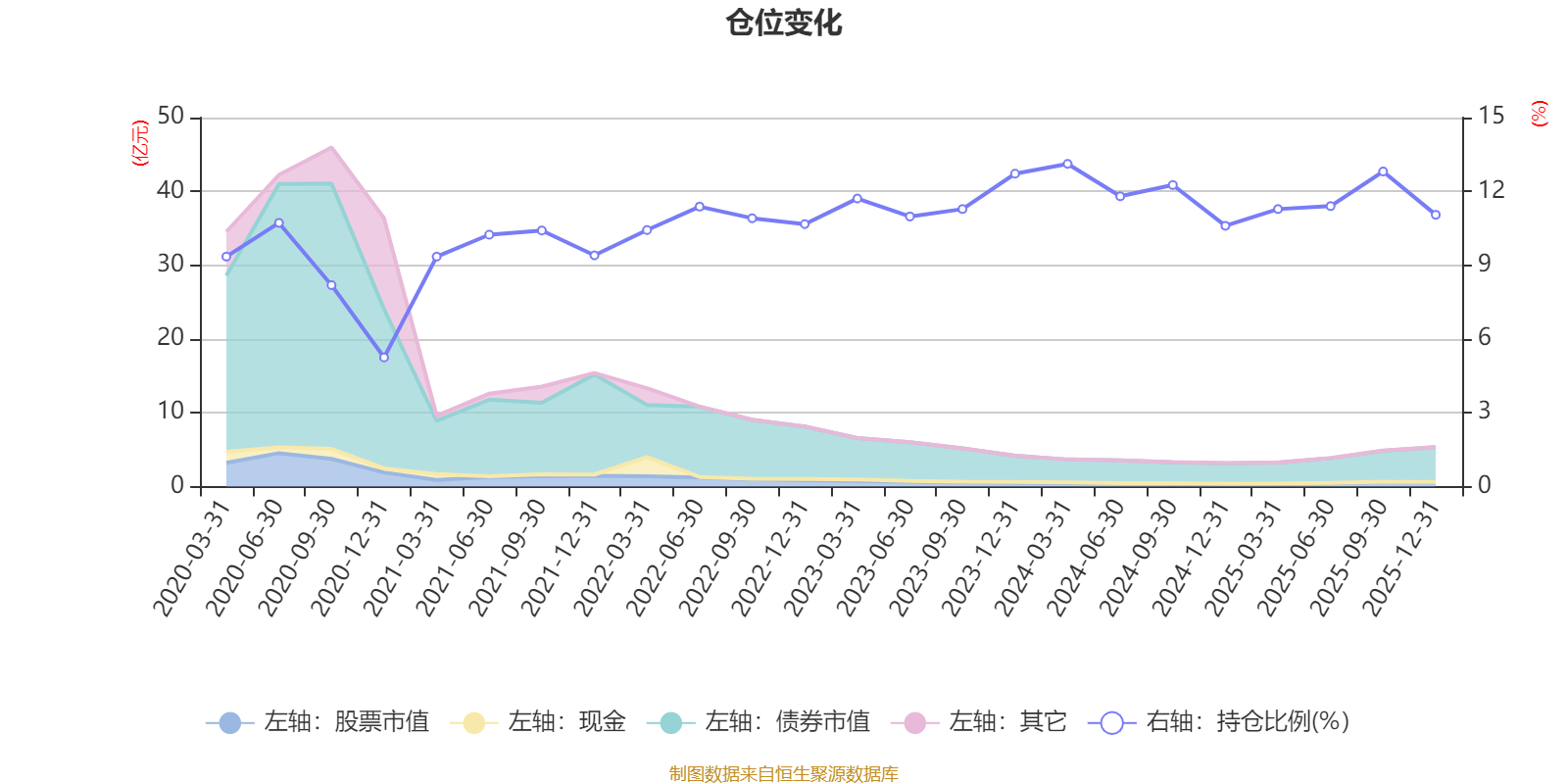 据定期报告数据统计,近三年平均股票仓位为11.75%,同类平均为19.2%。2024年一季度末基金达到13.12%的最高仓位,2020年末最低,为5.25%。