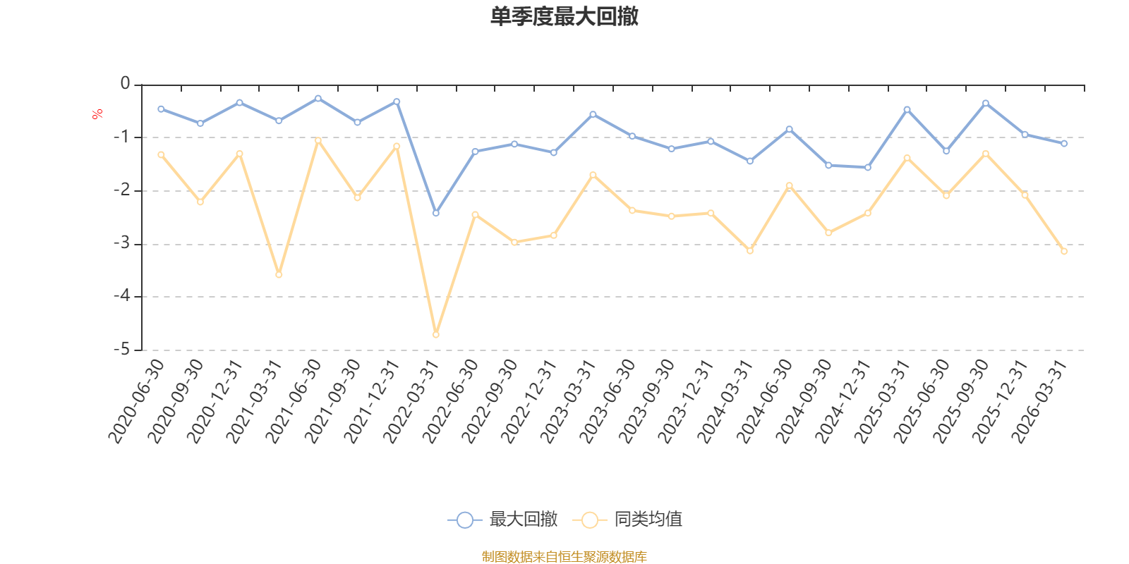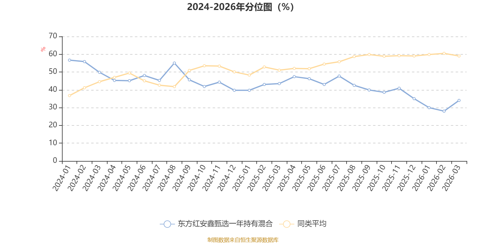 通过所选区间该基金净值增长率分位图,可以观察该基金与同类基金业绩比较情况。图为坐标原点到区间内某时点的净值增长率在同类基金中的分位数。