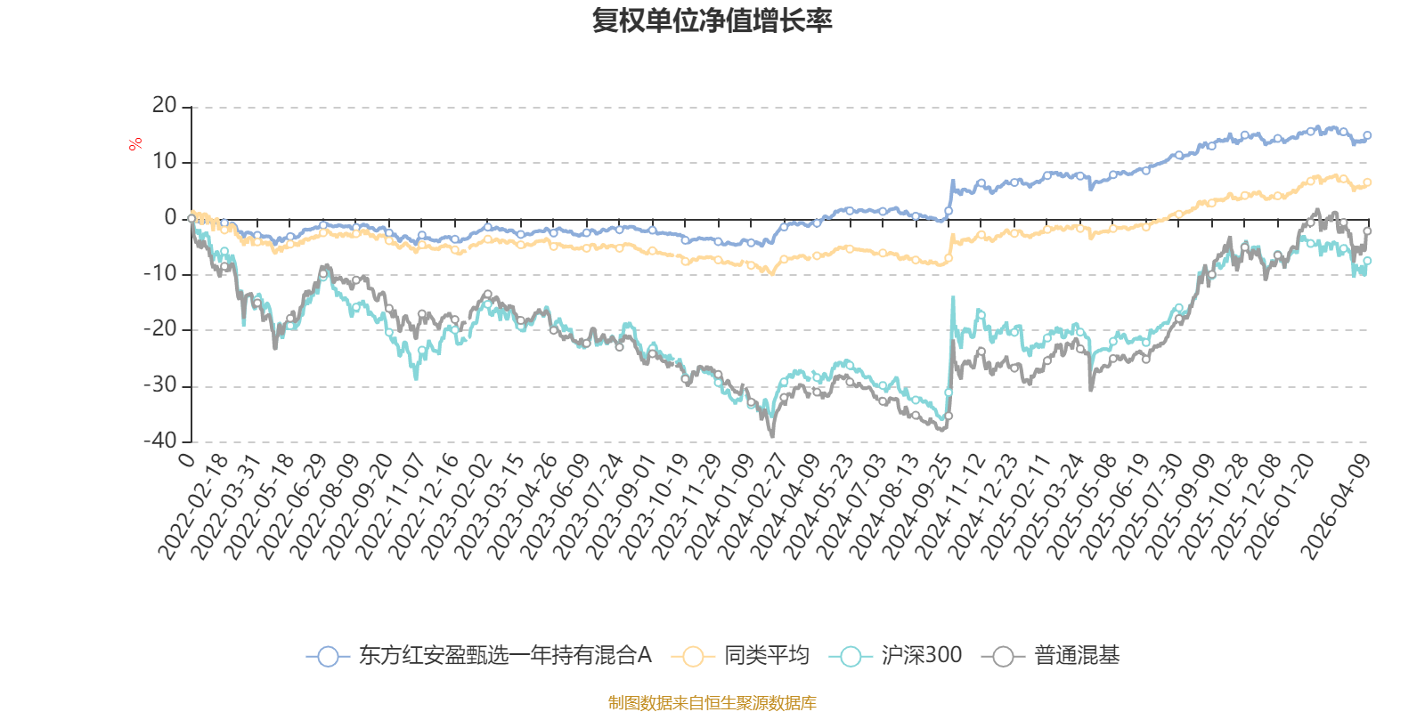 该基金属于偏债混合型基金。截至4月9日,单位净值为1.168元。基金经理是余剑峰,目前管理6只基金。其中,截至4月9日,东方红安盈甄选一年持有混合A近一年复权单位净值增长率最高,达8.67%;东方红慧鑫甄选6个月持有混合A最低,为7.44%。