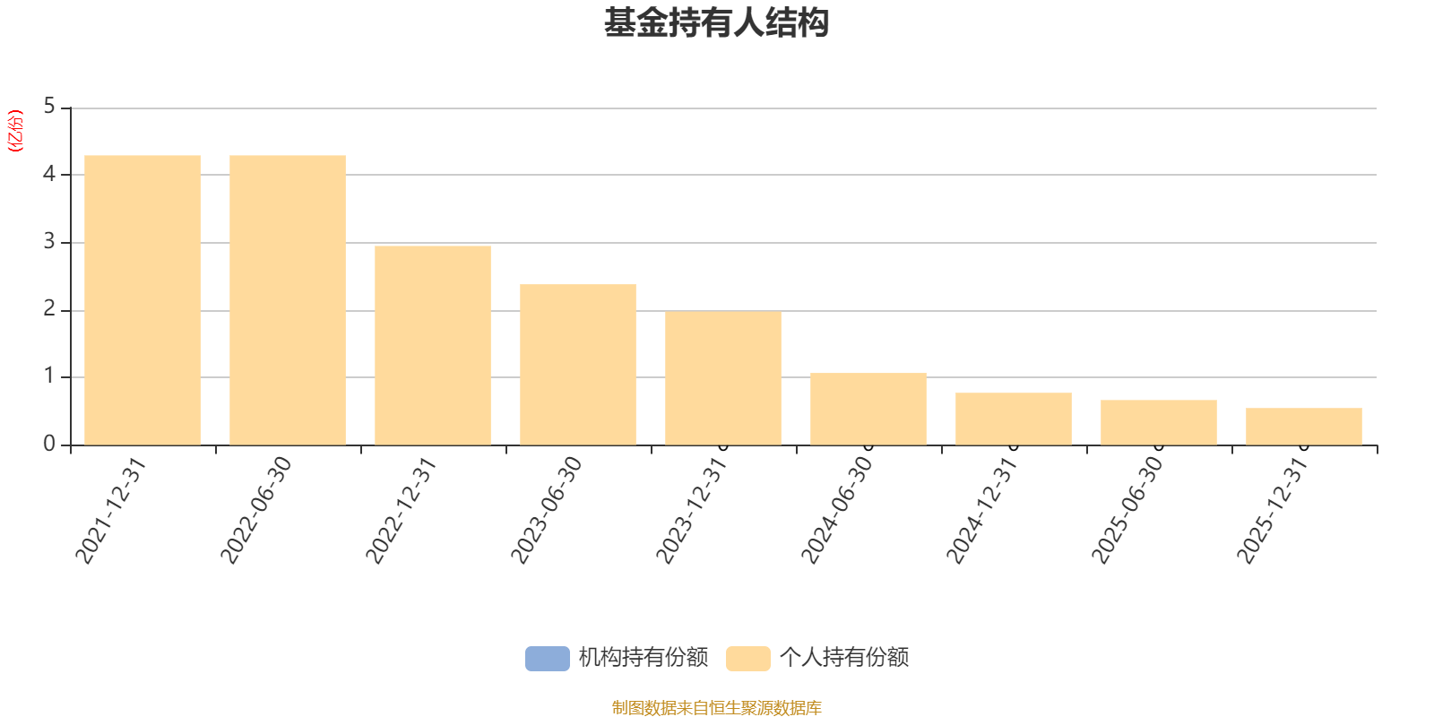 截至2025年12月31日,基金持有人共计978户,合计持有5477.87万份。其中管理人员工持有141万份,占比2.57%,机构持有份额占比0.00%,个人投资者占比100.00%。