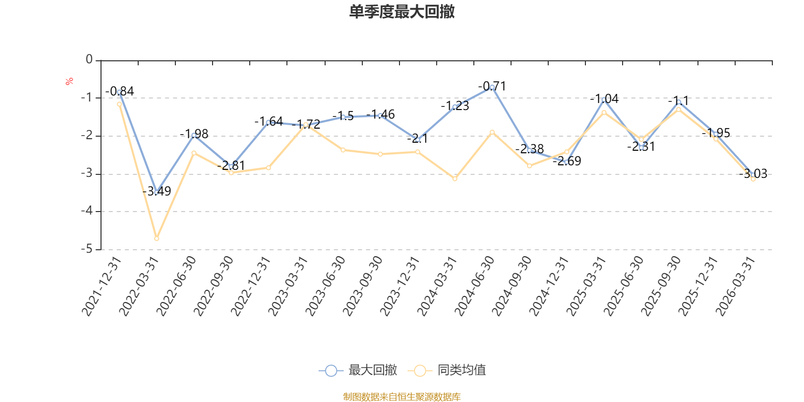 截至4月9日,基金近三年最大回撤为3.58%,同类可比基金排名90/534。单季度最大回撤出现在2022年一季度,为3.49%。
