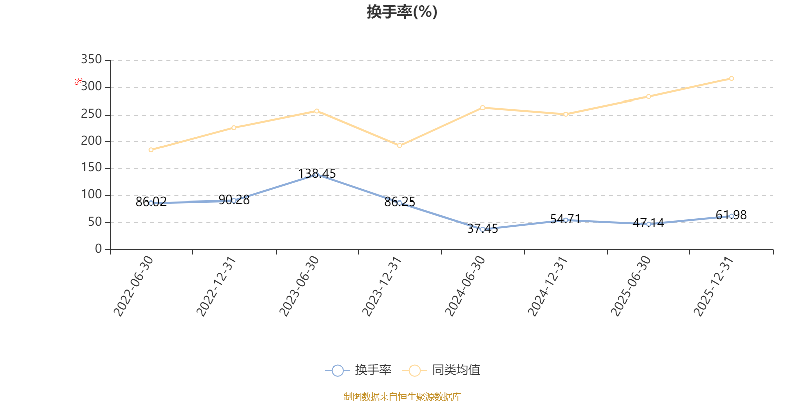 截至2025年12月31日,基金最近一年换手率约108.9%,持续低于同类均值。