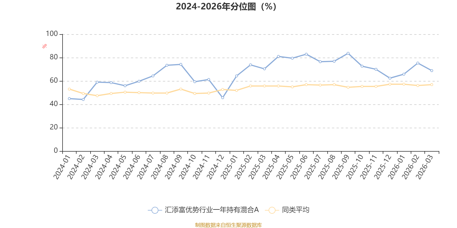 通过所选区间该基金净值增长率分位图,可以观察该基金与同类基金业绩比较情况。图为坐标原点到区间内某时点的净值增长率在同类基金中的分位数。