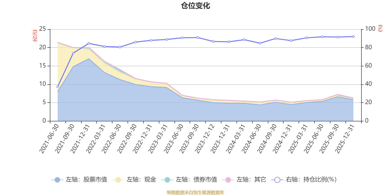 据定期报告数据统计,近三年平均股票仓位为96.71%,同类平均为86.12%。2025年末基金达到92.06%的最高仓位,2021年上半年末最低,为37.34%。