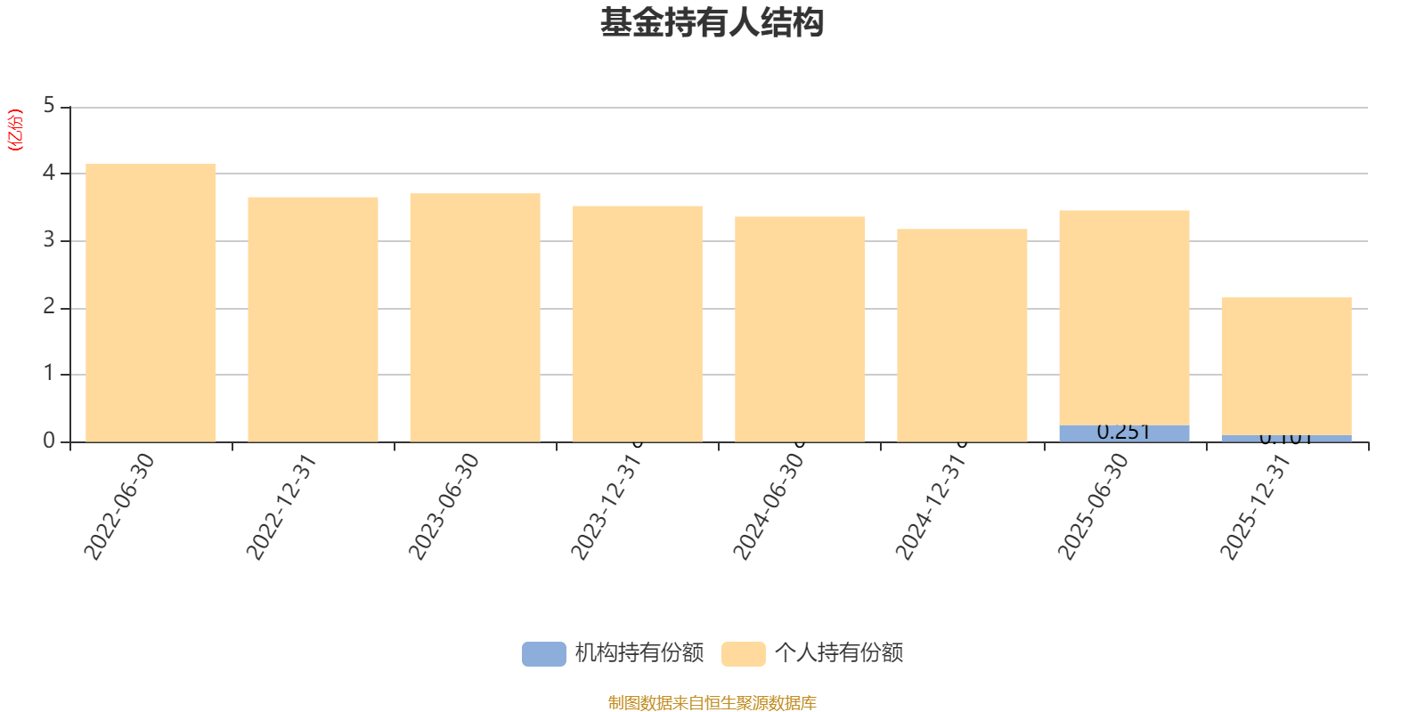 截至2025年12月31日,基金持有人共计3197户,合计持有2.16亿份。其中管理人员工持有570.87万份,占比2.65%,机构持有份额占比4.69%,个人投资者占比95.31%。