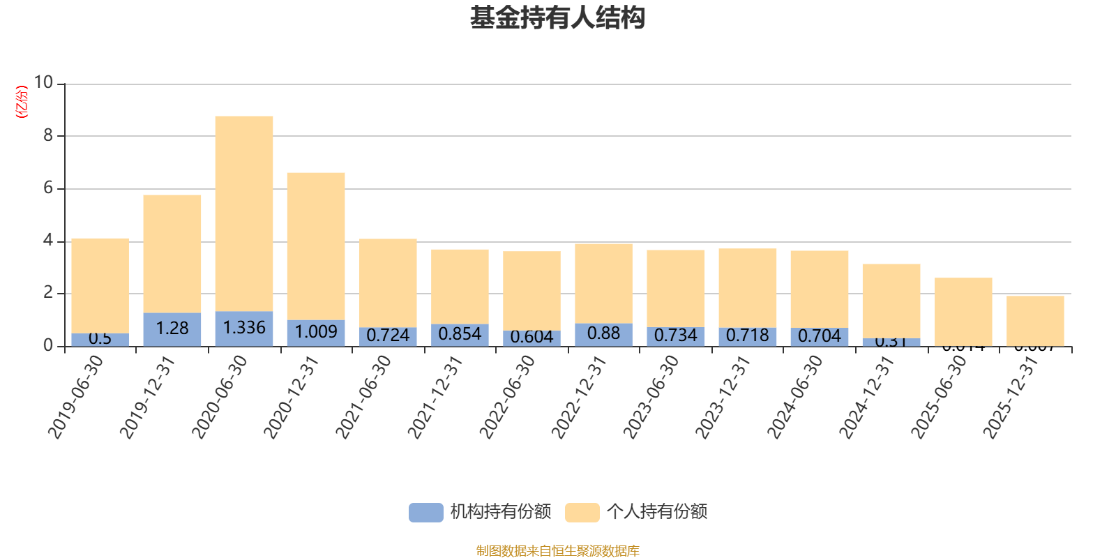 截至2025年12月31日,基金持有人共计2.95万户,合计持有1.92亿份。其中管理人员工持有3161.54份,机构持有份额占比0.34%,个人投资者占比99.66%。