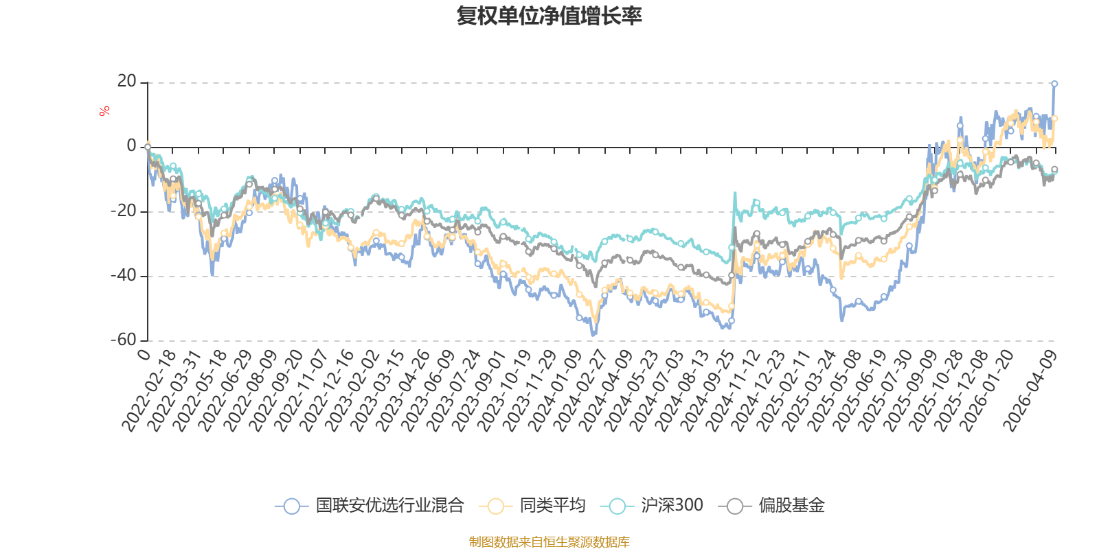 截至4月9日,国联安优选行业混合近三个月复权单位净值增长率为11.03%,位于同类可比基金38/229;近半年复权单位净值增长率为24.06%,位于同类可比基金28/229;近一年复权单位净值增长率为153.44%,位于同类可比基金20/229;近三年复权单位净值增长率为63.57%,位于同类可比基金51/171。