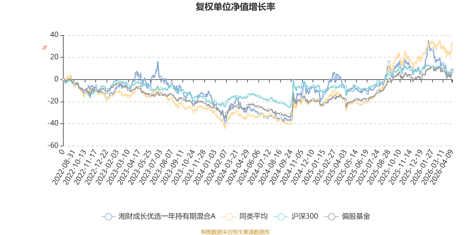 截至4月9日,湘财成长优选一年持有期混合A近三个月复权单位净值增长率为-12.28%,位于同类可比基金218/229;近半年复权单位净值增长率为-7.14%,位于同类可比基金187/229;近一年复权单位净值增长率为22.50%,位于同类可比基金212/229;近三年复权单位净值增长率为0.75%,位于同类可比基金155/171。