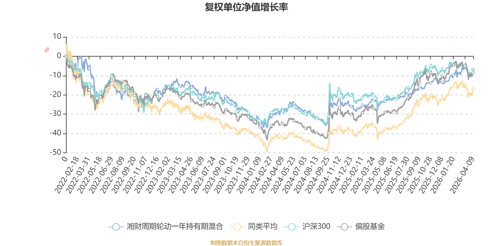 截至4月9日,湘财周期轮动一年持有期混合近三个月复权单位净值增长率为1.50%,位于同类可比基金208/621;近半年复权单位净值增长率为6.80%,位于同类可比基金158/621;近一年复权单位净值增长率为24.51%,位于同类可比基金457/618;近三年复权单位净值增长率为4.58%,位于同类可比基金370/559。