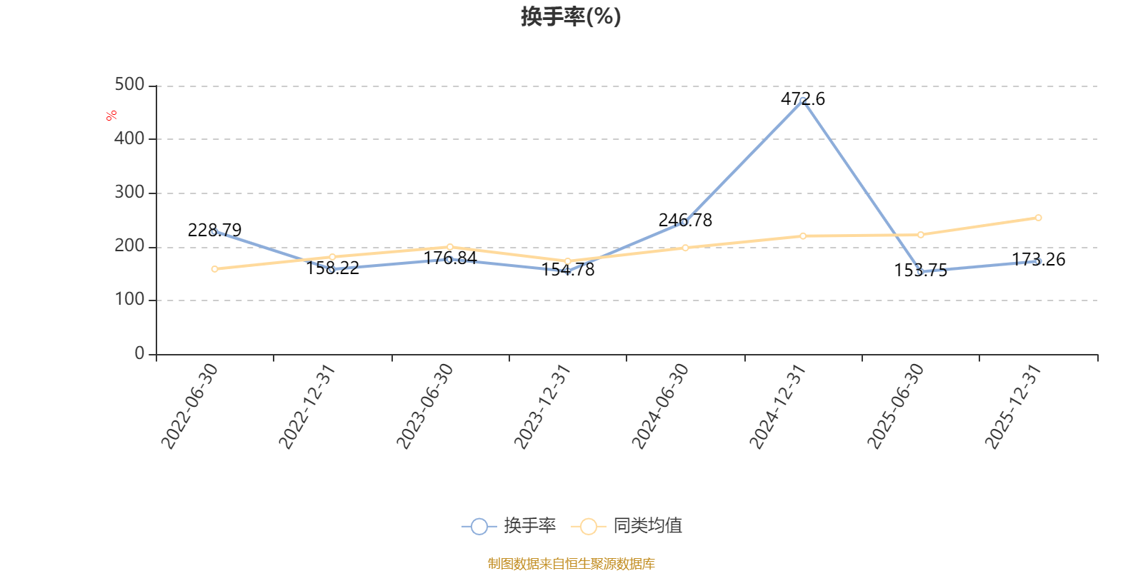 截至2025年12月31日,基金最近一年换手率约320.36%,持续1年低于同类均值。