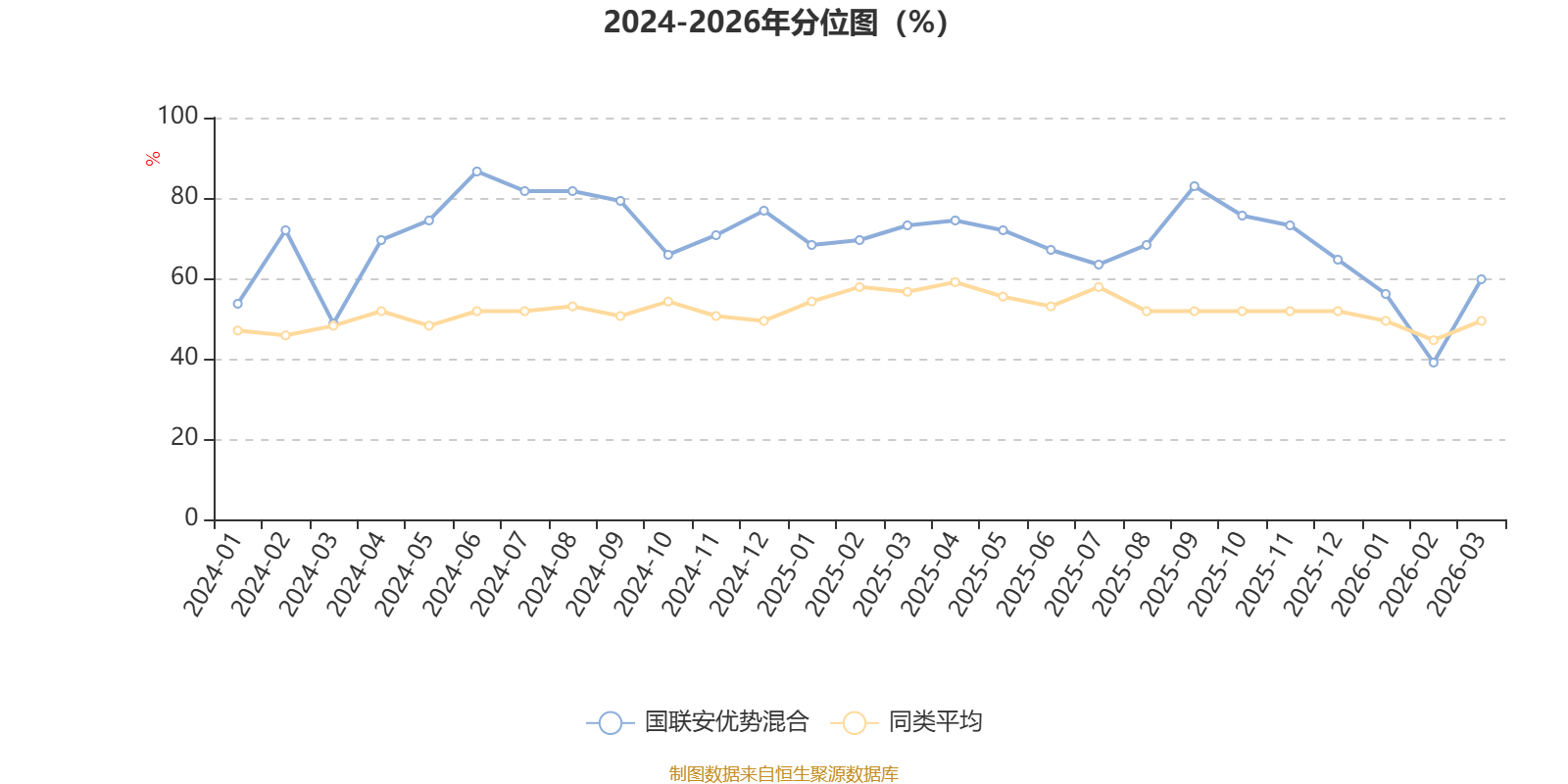 通过所选区间该基金净值增长率分位图,可以观察该基金与同类基金业绩比较情况。图为坐标原点到区间内某时点的净值增长率在同类基金中的分位数。