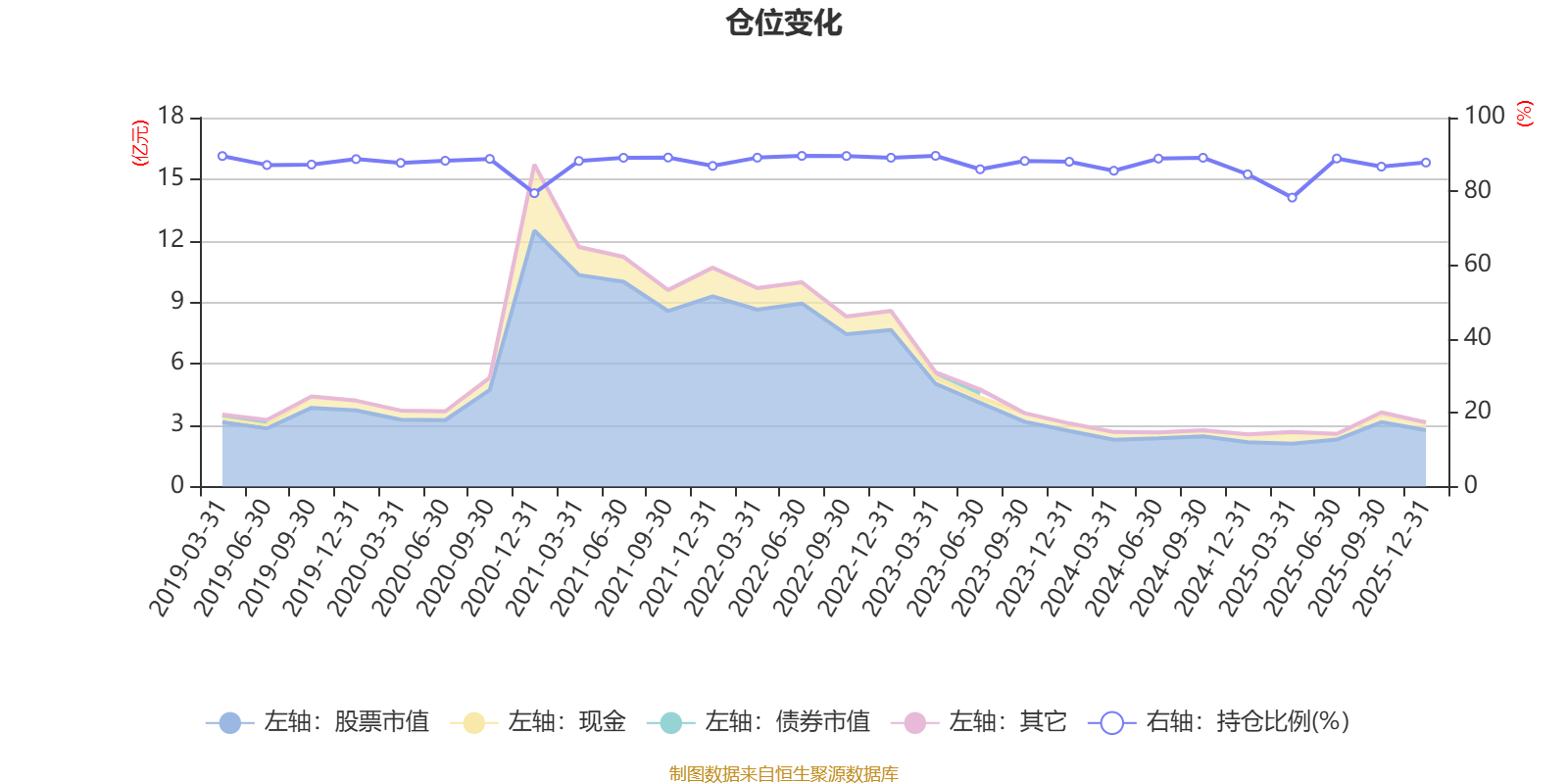据定期报告数据统计,近三年平均股票仓位为86.83%,同类平均为87.15%。2023年一季度末基金达到89.64%的最高仓位,2025年一季度末最低,为78.32%。