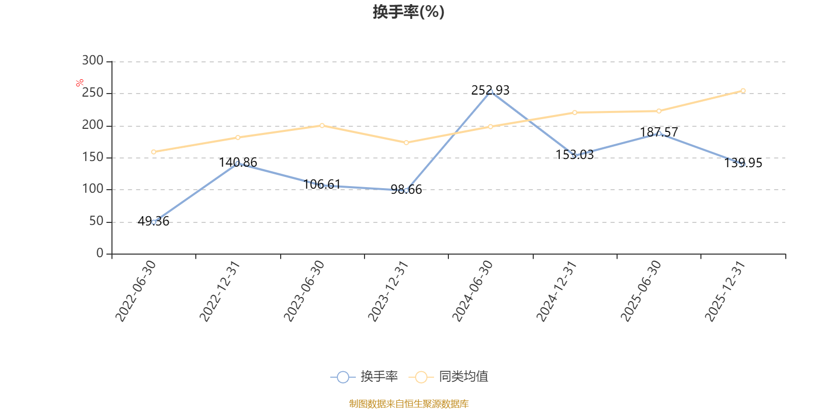 截至2025年12月31日,基金最近一年换手率约323.94%,持续1年低于同类均值。