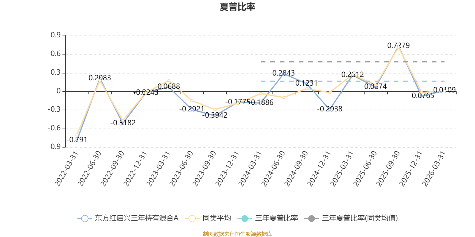 截至3月31日,基金近三年夏普比率为0.1629,位于同类可比基金457/550。
