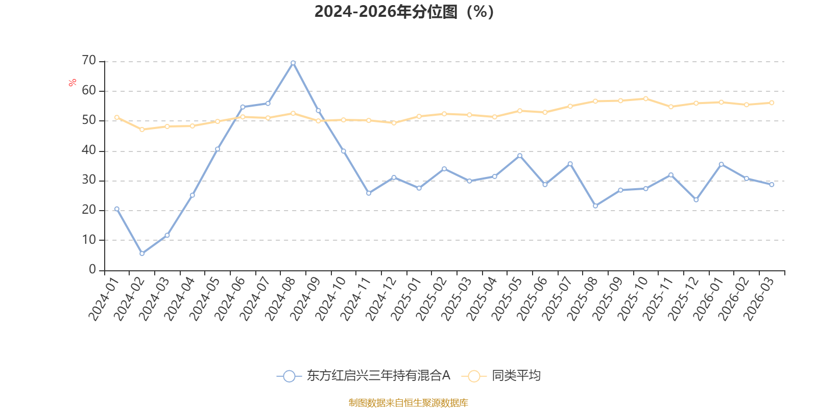通过所选区间该基金净值增长率分位图,可以观察该基金与同类基金业绩比较情况。图为坐标原点到区间内某时点的净值增长率在同类基金中的分位数。