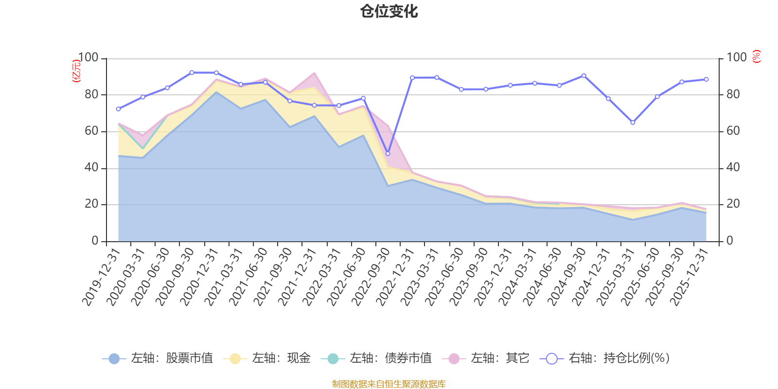 据定期报告数据统计,近三年平均股票仓位为83.41%,同类平均为72.57%。2020年三季度末基金达到92.23%的最高仓位,2022年三季度末最低,为47.96%。