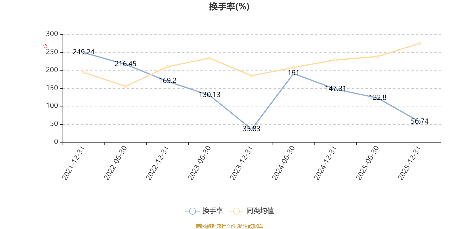 截至2025年12月31日,基金最近一年换手率约178.75%,持续3年低于同类均值。