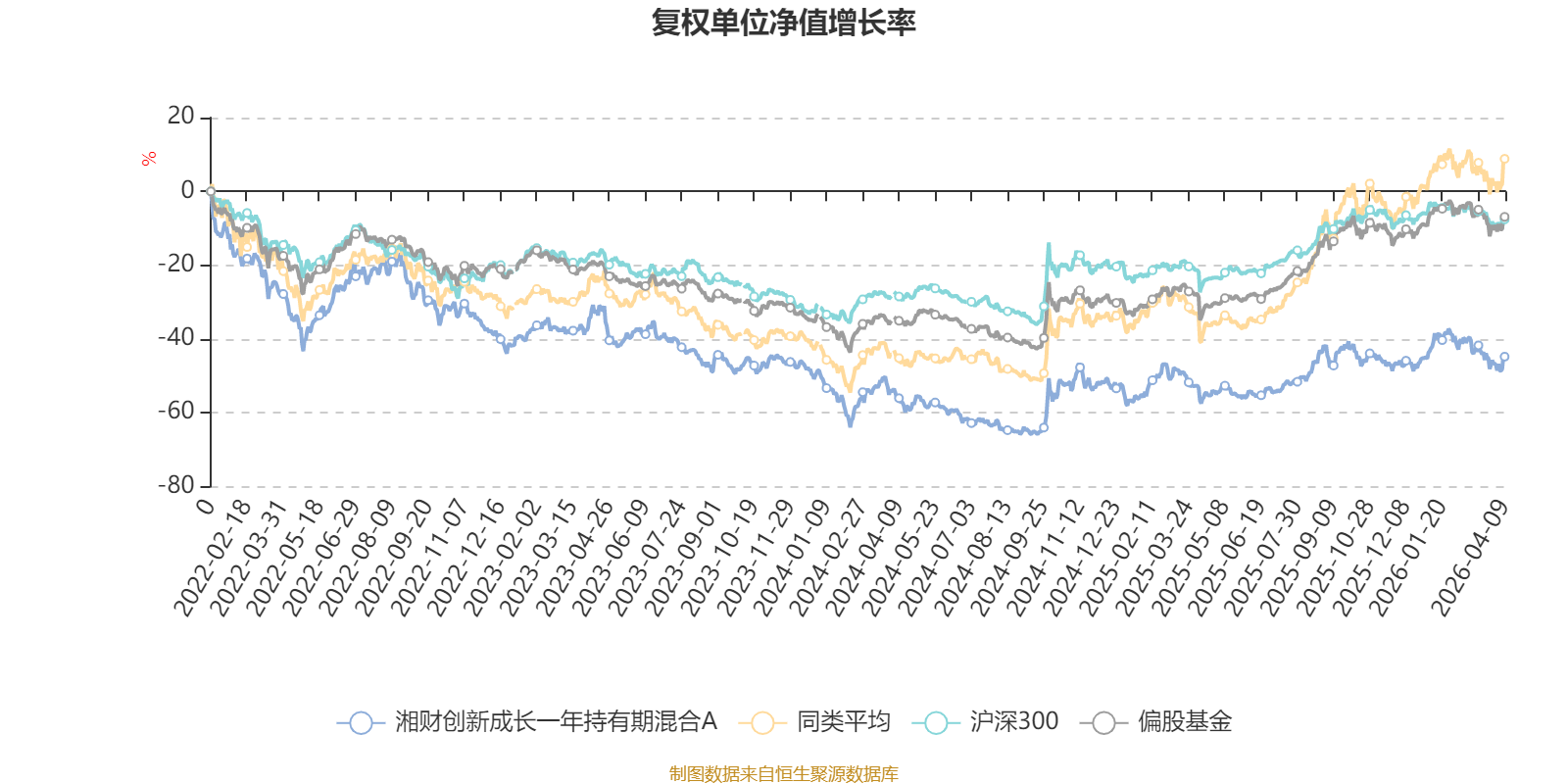 截至4月9日,湘财创新成长一年持有期混合A近三个月复权单位净值增长率为-6.83%,位于同类可比基金186/229;近半年复权单位净值增长率为-5.75%,位于同类可比基金174/229;近一年复权单位净值增长率为26.37%,位于同类可比基金206/229;近三年复权单位净值增长率为-20.26%,位于同类可比基金169/171。