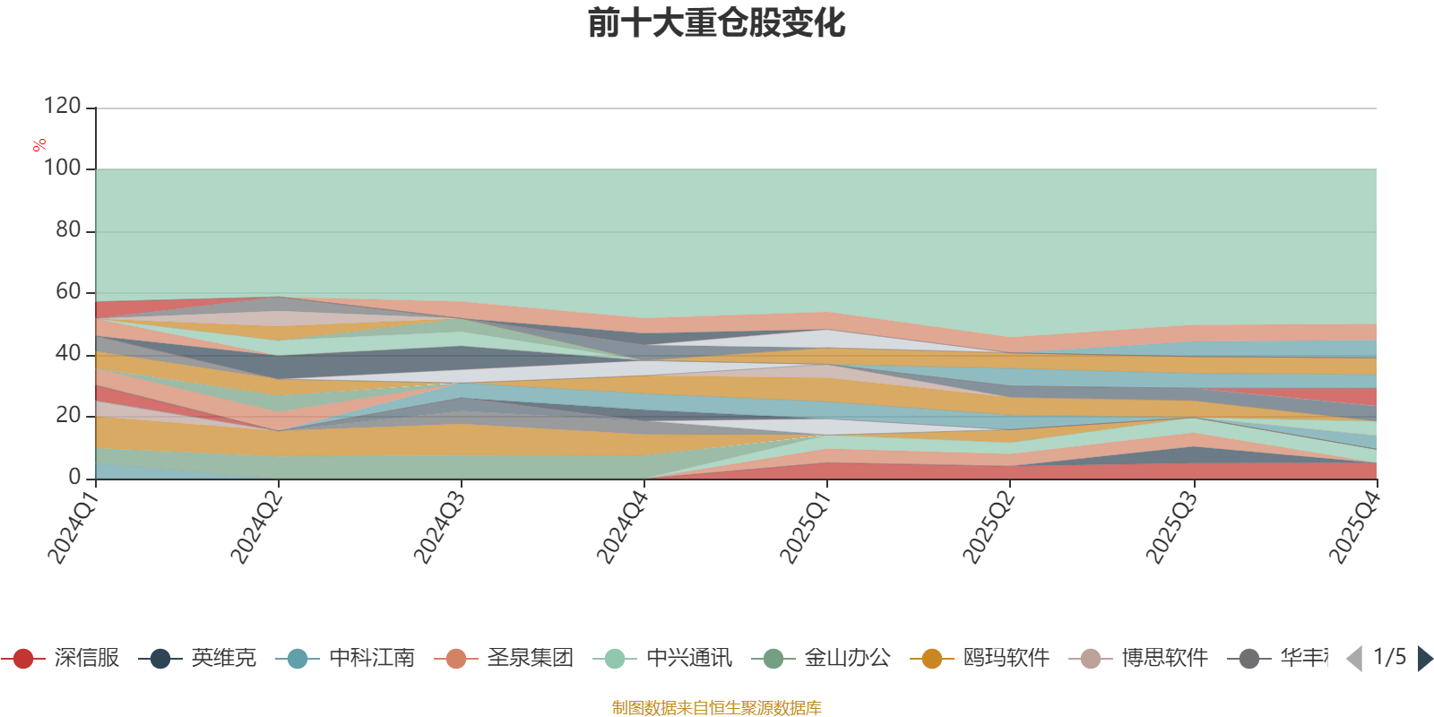 截至2025年末,基金十大重仓股分别是香农芯创、世运电路、北方华创、海光信息、深信服、瑞可达、源杰科技、金桥信息、中兴通讯、寒武纪。