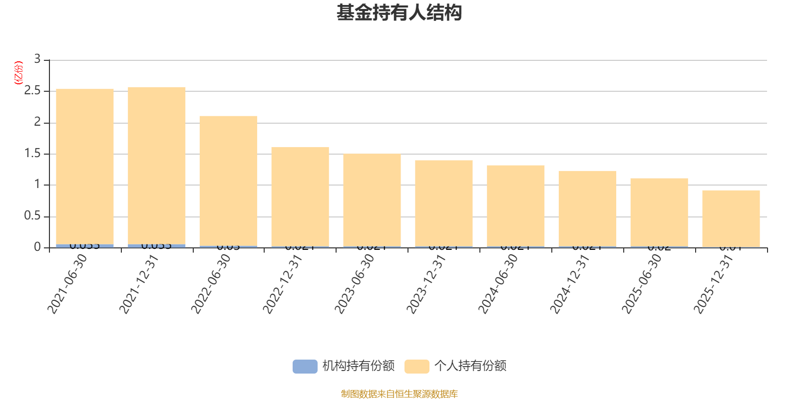 截至2025年12月31日,基金持有人共计1591户,合计持有9143.86万份。其中管理人员工持有5.73万份,占比0.06%,机构持有份额占比1.09%,个人投资者占比98.91%。