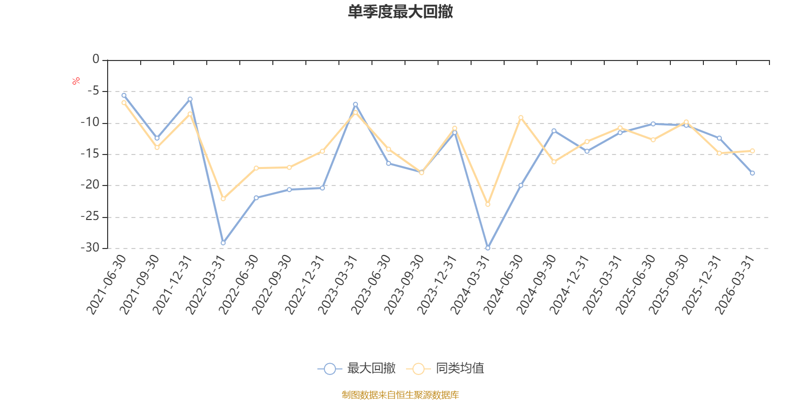 截至4月9日,基金近三年最大回撤为50.63%,同类可比基金排名149/168。单季度最大回撤出现在2024年一季度,为29.96%。