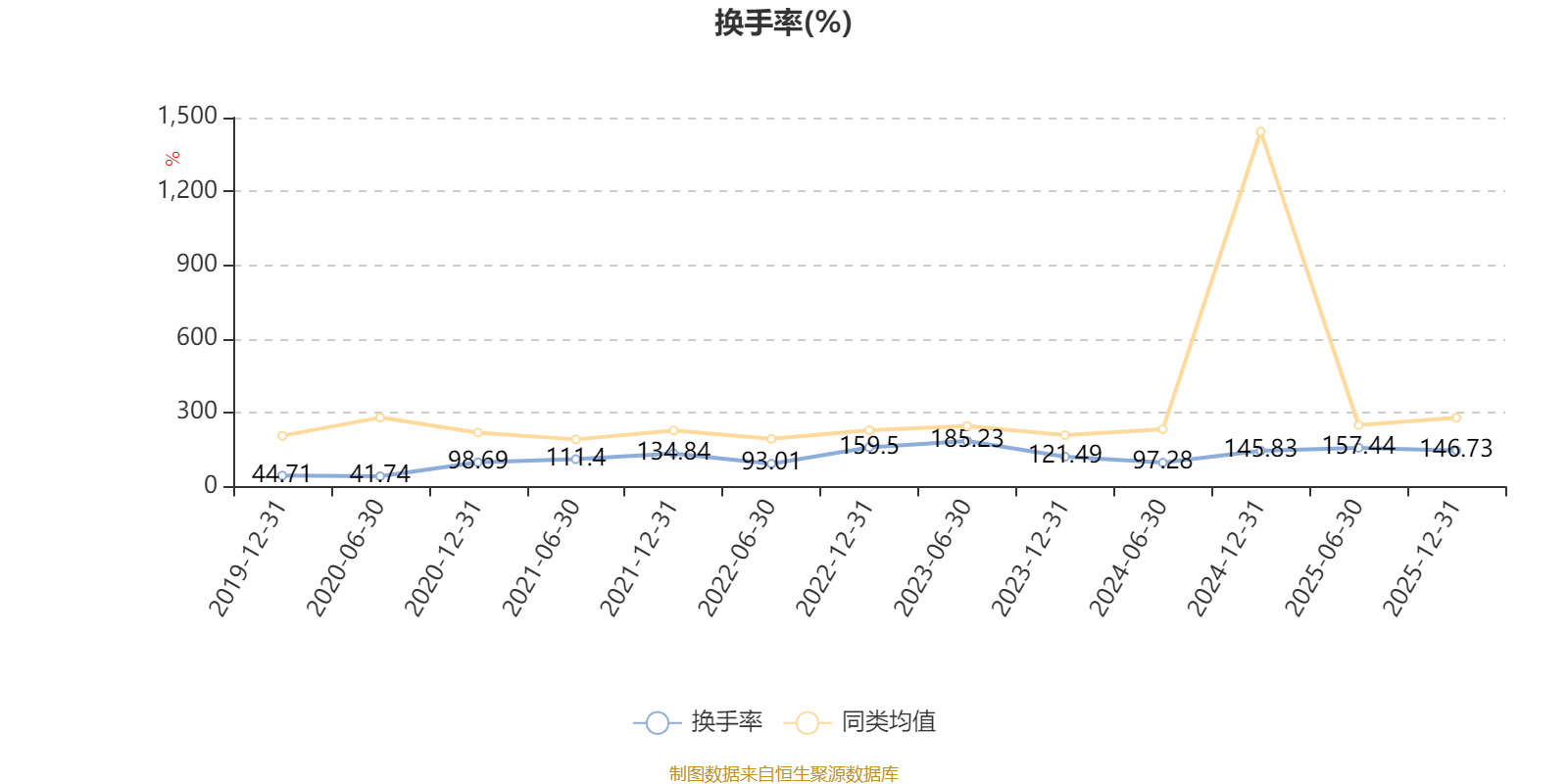 截至2025年12月31日,基金最近一年换手率约304.28%,持续低于同类均值。