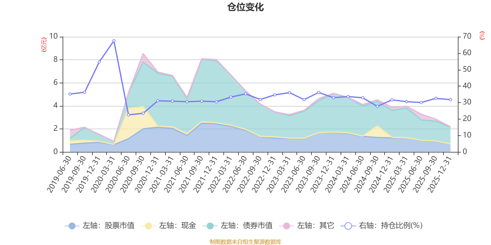据定期报告数据统计,近三年平均股票仓位为32.36%,同类平均为72.57%。2020年一季度末基金达到67.56%的最高仓位,2020年上半年末最低,为22.6%。