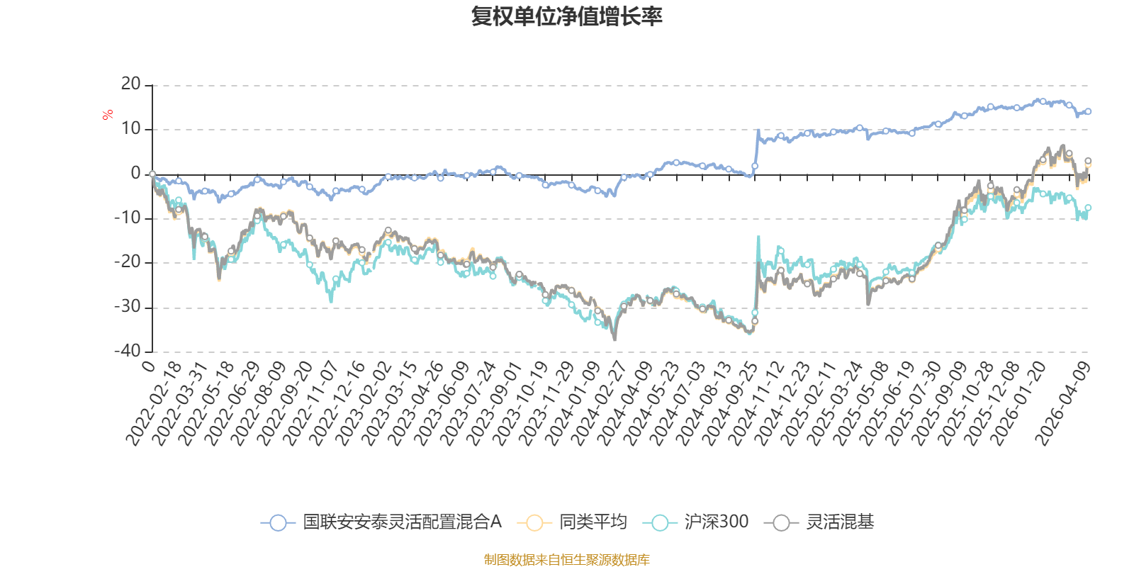 截至4月9日,国联安安泰灵活配置混合A近三个月复权单位净值增长率为-2.14%,位于同类可比基金790/1287;近半年复权单位净值增长率为-0.90%,位于同类可比基金857/1286;近一年复权单位净值增长率为5.33%,位于同类可比基金1150/1286;近三年复权单位净值增长率为14.19%,位于同类可比基金626/1286。