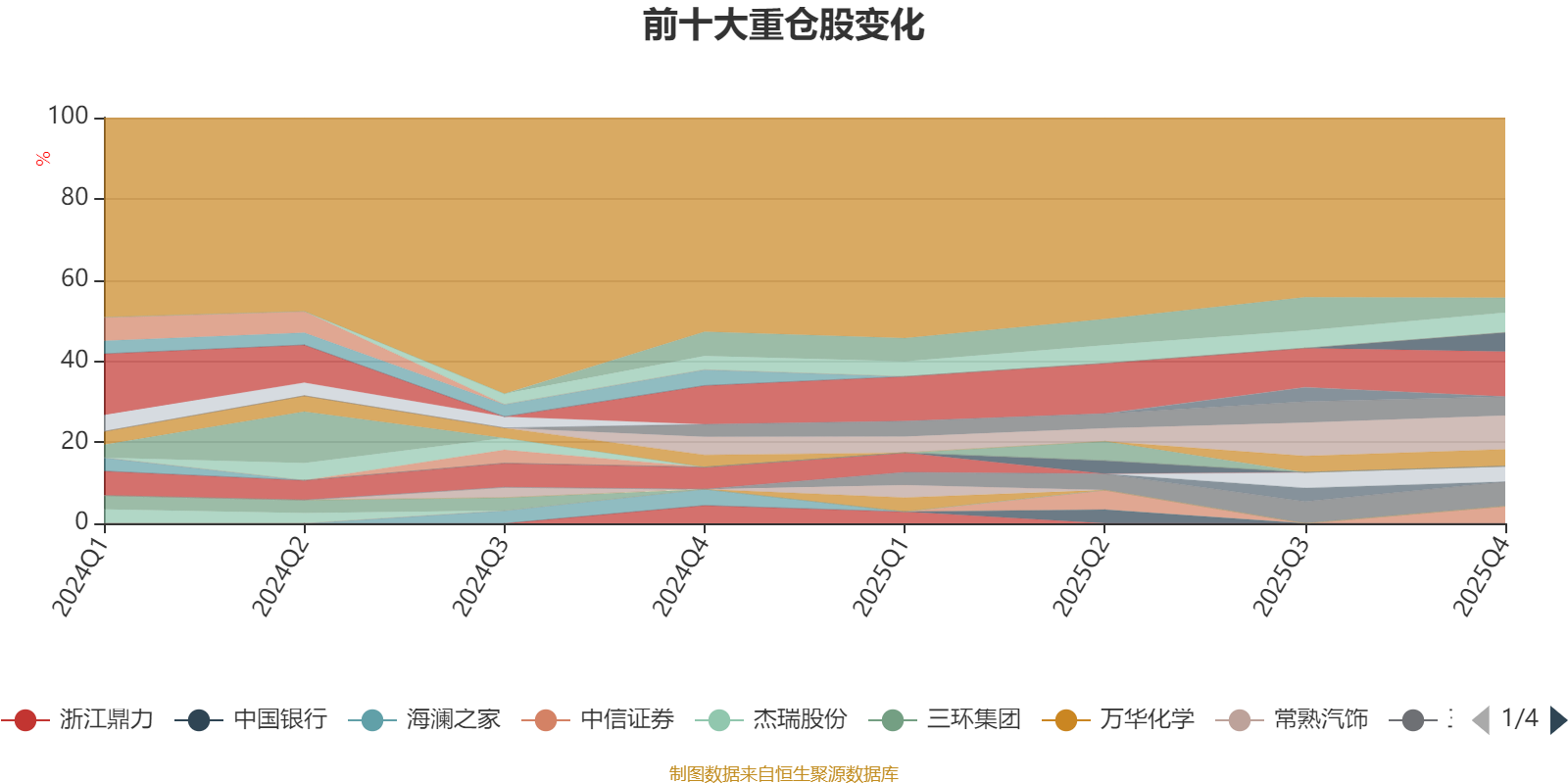 截至2025年末,基金十大重仓股分别是交通银行、长江电力、三一重工、海尔智家、中国移动、星宇股份、中信证券、伊利股份、格力电器、建设银行。
