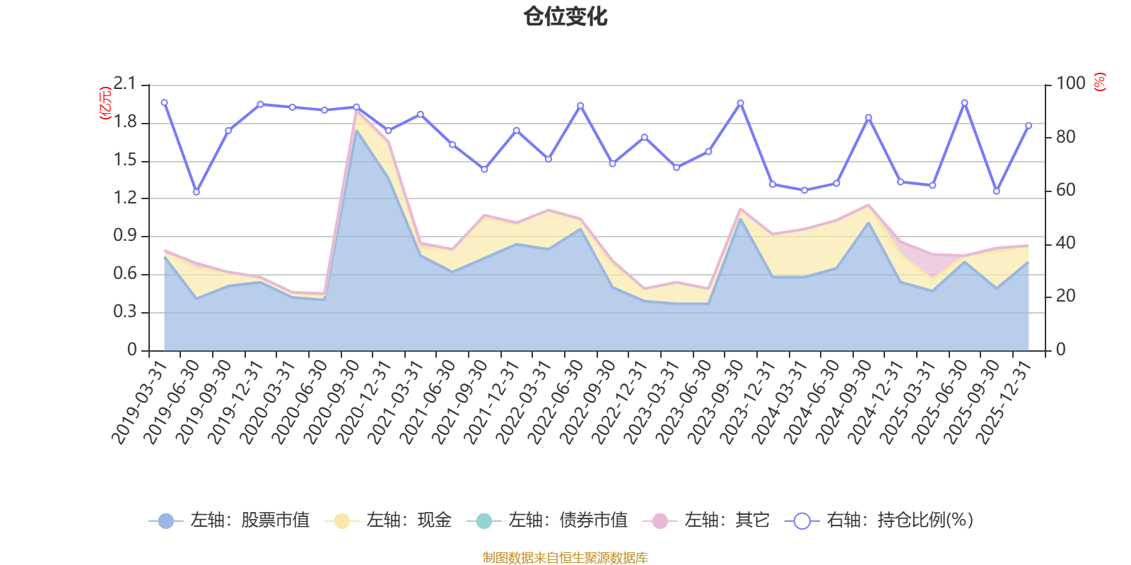 据定期报告数据统计,近三年平均股票仓位为72.82%,同类平均为84.04%。2019年一季度末基金达到93.33%的最高仓位,2019年上半年末最低,为59.67%。