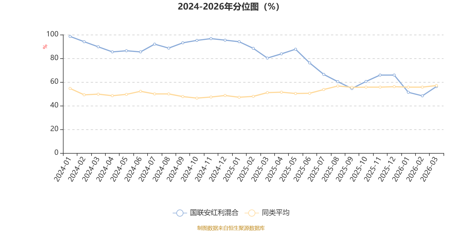 通过所选区间该基金净值增长率分位图,可以观察该基金与同类基金业绩比较情况。图为坐标原点到区间内某时点的净值增长率在同类基金中的分位数。