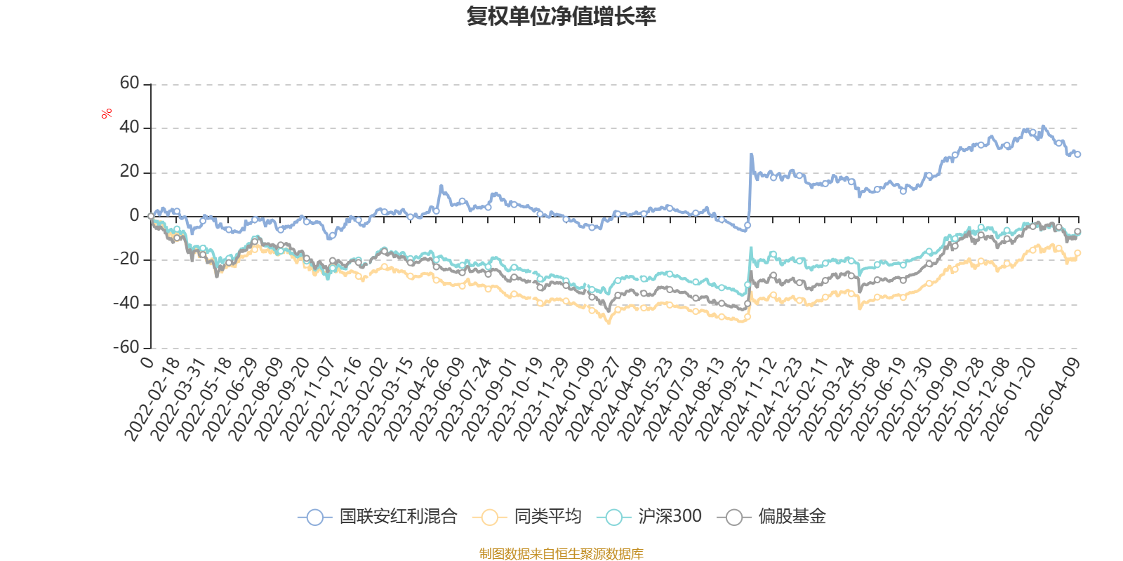 截至4月9日,国联安红利混合近三个月复权单位净值增长率为-7.46%,位于同类可比基金564/689;近半年复权单位净值增长率为-2.55%,位于同类可比基金472/689;近一年复权单位净值增长率为15.49%,位于同类可比基金583/685;近三年复权单位净值增长率为26.41%,位于同类可比基金130/417。
