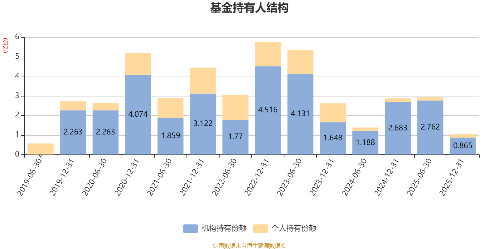 截至2025年12月31日,基金持有人共计869户,合计持有1.04亿份。其中管理人员工持有31.17万份,占比0.30%,机构持有份额占比83.28%,个人投资者占比16.72%。