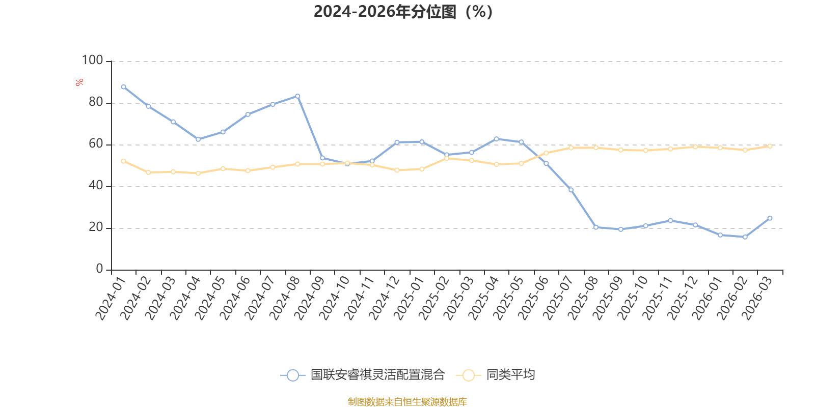 通过所选区间该基金净值增长率分位图,可以观察该基金与同类基金业绩比较情况。图为坐标原点到区间内某时点的净值增长率在同类基金中的分位数。