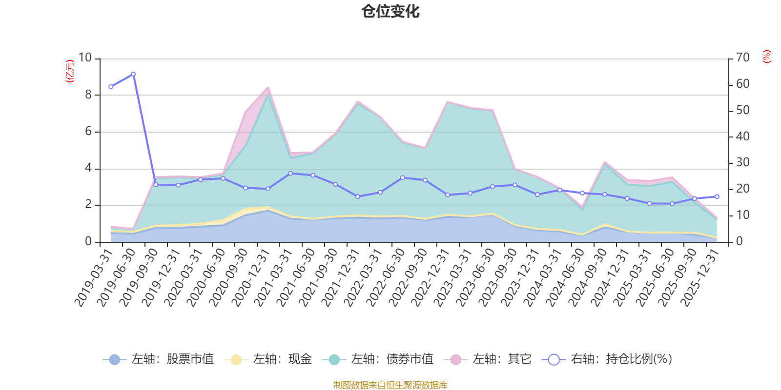 据定期报告数据统计,近三年平均股票仓位为18.02%,同类平均为72.57%。2019年上半年末基金达到64.06%的最高仓位,2025年上半年末最低,为14.62%。