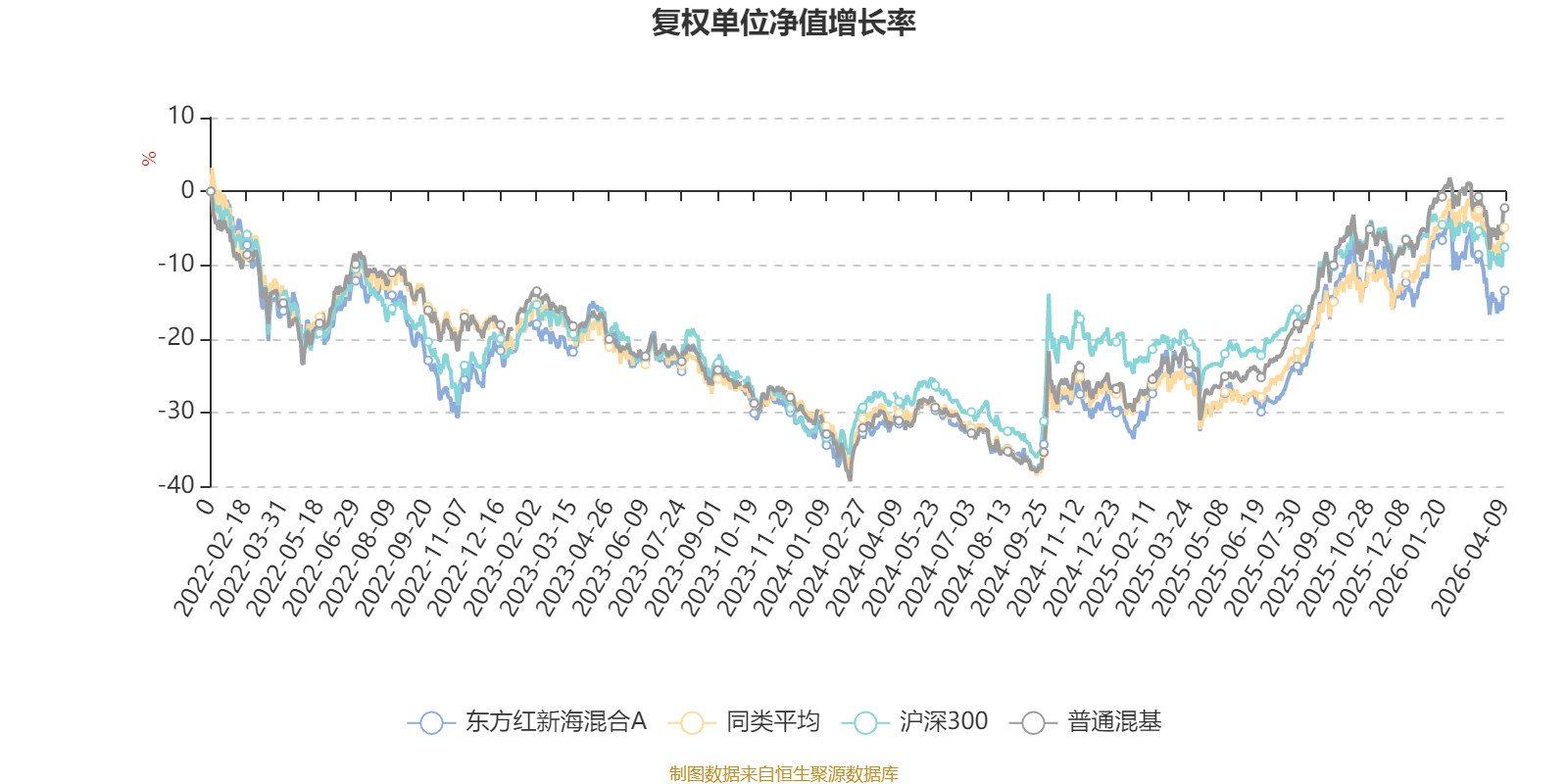 截至4月9日,东方红新海混合A近三个月复权单位净值增长率为-7.14%,位于同类可比基金122/134;近半年复权单位净值增长率为-8.06%,位于同类可比基金123/134;近一年复权单位净值增长率为24.79%,位于同类可比基金71/134;近三年复权单位净值增长率为1.73%,位于同类可比基金96/126。