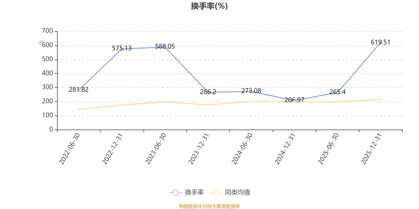截至2025年12月31日,基金最近一年换手率约876.72%,持续高于同类均值。